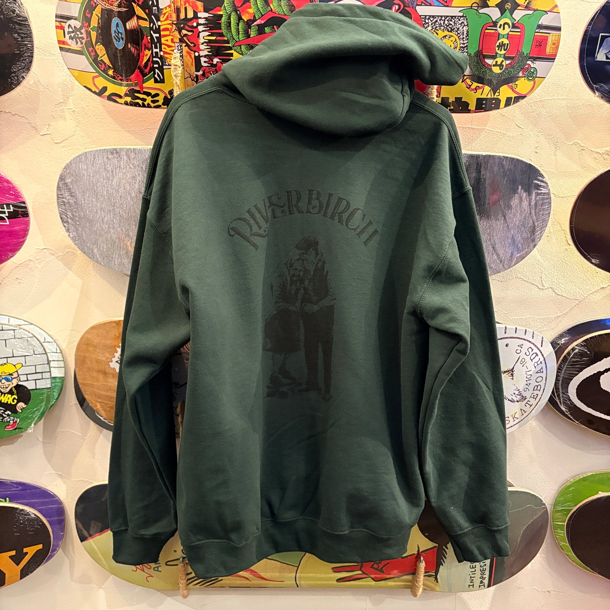 YUSA氏がデザインした老夫妻がスケートボードで楽しむ姿が描かれたデザインをパーカーにしました。